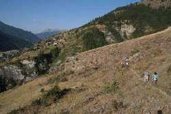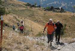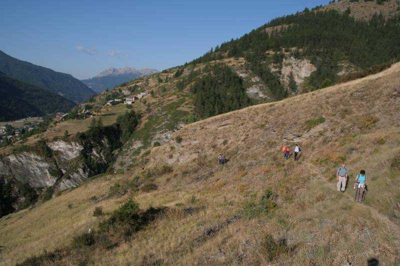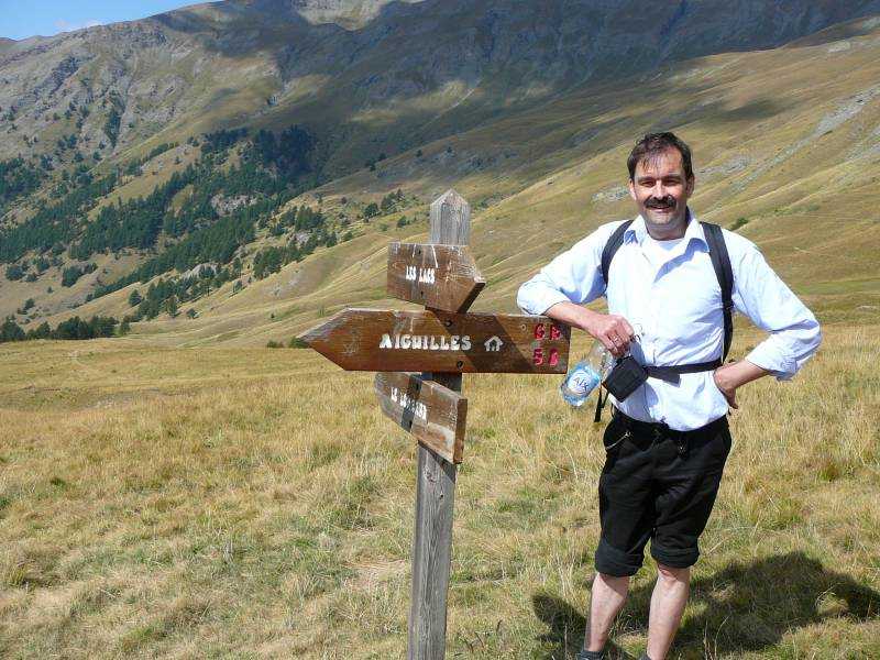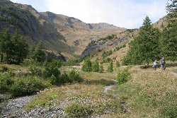 Im Naturpark des schönen Queyrastales nutzen wir heute bei herrlichem Sonnenschein die Gelegenheit zu einem Wandertag. Beginnend vom Hotel bei 1500 m entscheiden sich 18 Reiseteilnehmer zu einer großen, achtstündigen Höhenwanderung, um nach sehr anstrengendem Aufstieg bis auf 2600 m und nach einer Rast am klaren Bergsee Lac Malrif steil hinunter nach Abriès zu gelangen. Dort treffen sie mit den anderen Reiseteilnehmern zusammen, die den 7 km langen Talweg entlang des Guil von Aiguilles hierher gewählt haben.