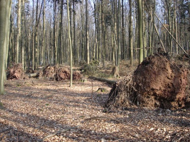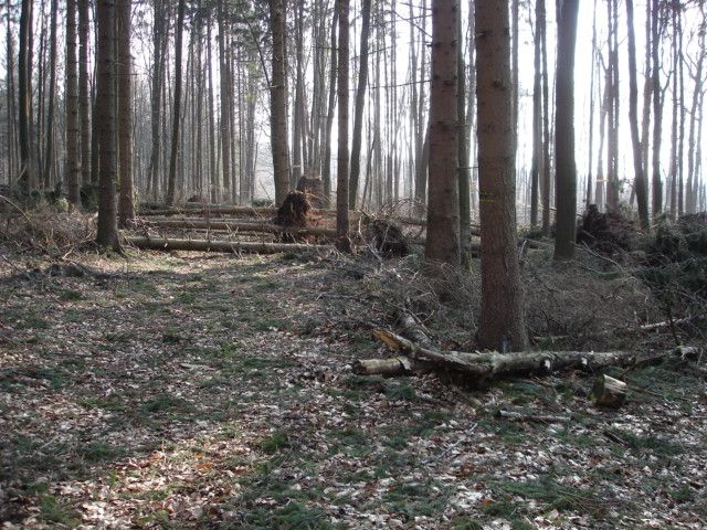 Aber auch in den nahen Waldungen oberhalb des Dorfes im Bereich des "Alten Rauschenberges" hat Kyrill eine große Zahl von Bäumen entwurzelt.